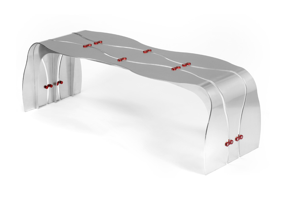 Cose el terreno con un hilo metálico. Se da paso generando un surco.Fluye como el río. Dinámico, lúdico, se adapta a diferentes espacios, tanto interiores como públicos.