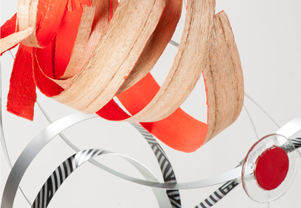 Junto a la artista Ana Manghi y el arquitecto Juan Diciervo, Fernando Poggio realizó el Collar Hyedra con lama de madera, aluminio y vidrio.